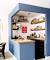 In an effort to add more light to the space the ceiling is covered in a textured orange wallpaper. The kitchen although small makes the most of its space with large lower cabinets full sized appliances and a kitchen island with a breakfast bar that seats four. Kitchen set is a must carry furniture in the kitchen of course.
