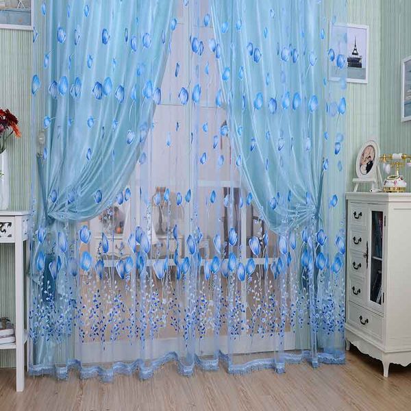 2019 Window Decor Tulip Printed Window Curtains Sheer Blinds Voile