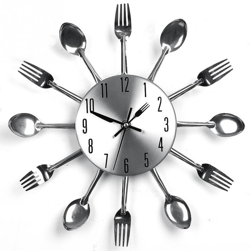 Modern Design Wall Clocks Sliver Cutlery Kitchen Utensil Wall